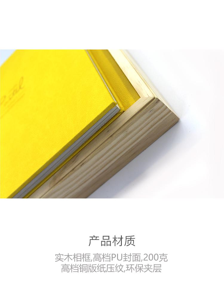 实木相框,高档PU封面,200克高档铜版纸压纹,环保夹层
